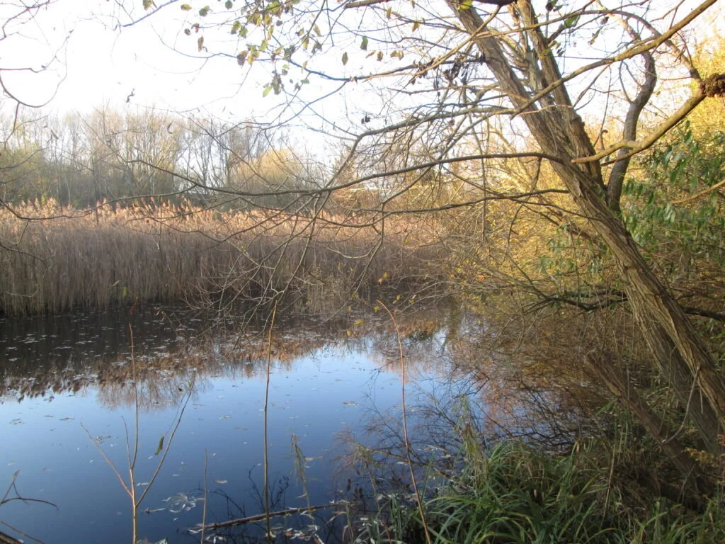 Landscape: the landscape is defined by trees and water features. The trees are mostly 50-year-old willows, sycamores, and hazels, but in addition the Friends have planted almost 100 berry-bearing trees (including bullace, rowan, and spindle) for over-wintering birds. The water features consist of the Frog Lane ditch (murky and often littered by beer cans thrown from the canal bridge); Swan Pond, created in the year 2000: sunny, open, and fringed by reeds that provide a haven for water voles, warblers, and water rails; the Mill Stream, with reeds on one bank and willows on the other, a relatively safe retreat for newly hatched ducklings; Heron Pond alongside the boardwalk, supporting a host of aquatic invertebrates; Tim’s Pond, overlooked by a bird hide; Dragonfly Pool at the southern end of the boardwalk; and Kingfisher Pool in the wood. The grassland in the west and south of the site, now cleared of rampant brambles, supports a wide variety of wild flowers, including marjoram, mullein, and yellow rattle, and many butterflies and solitary bees, not to mention lizards, grass snakes, and glow worms.